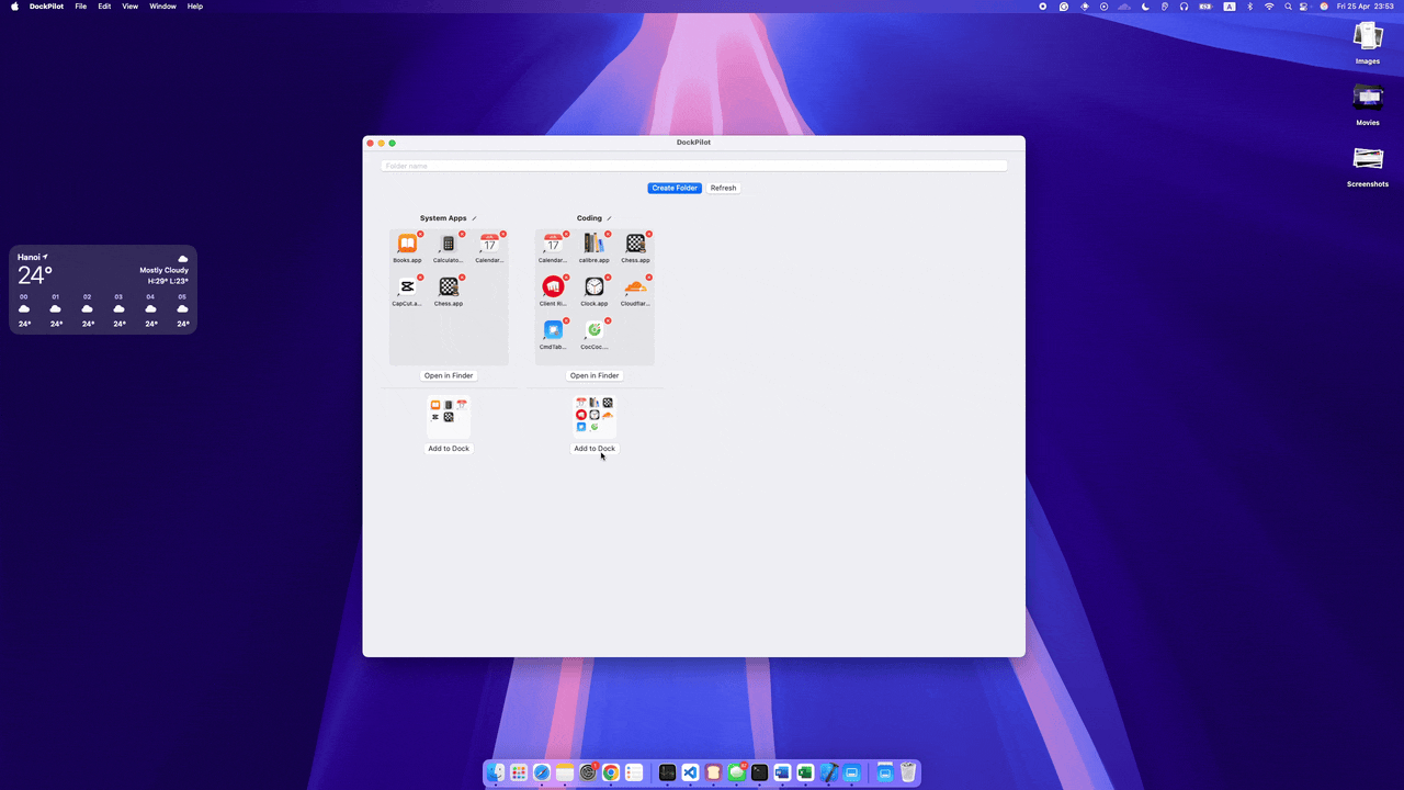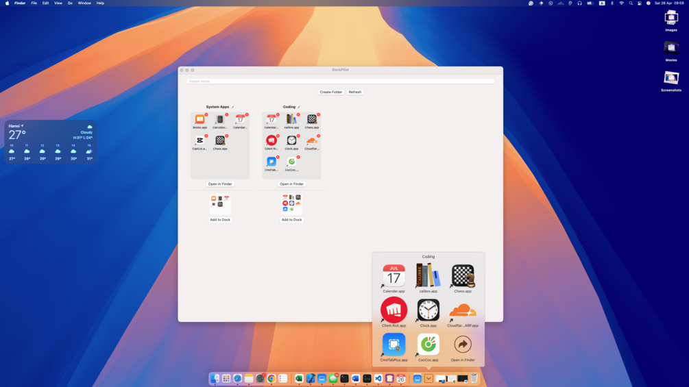 Dock Pilot is an application that helps you quickly create groups of applications and pin them to the macOS Dock.
