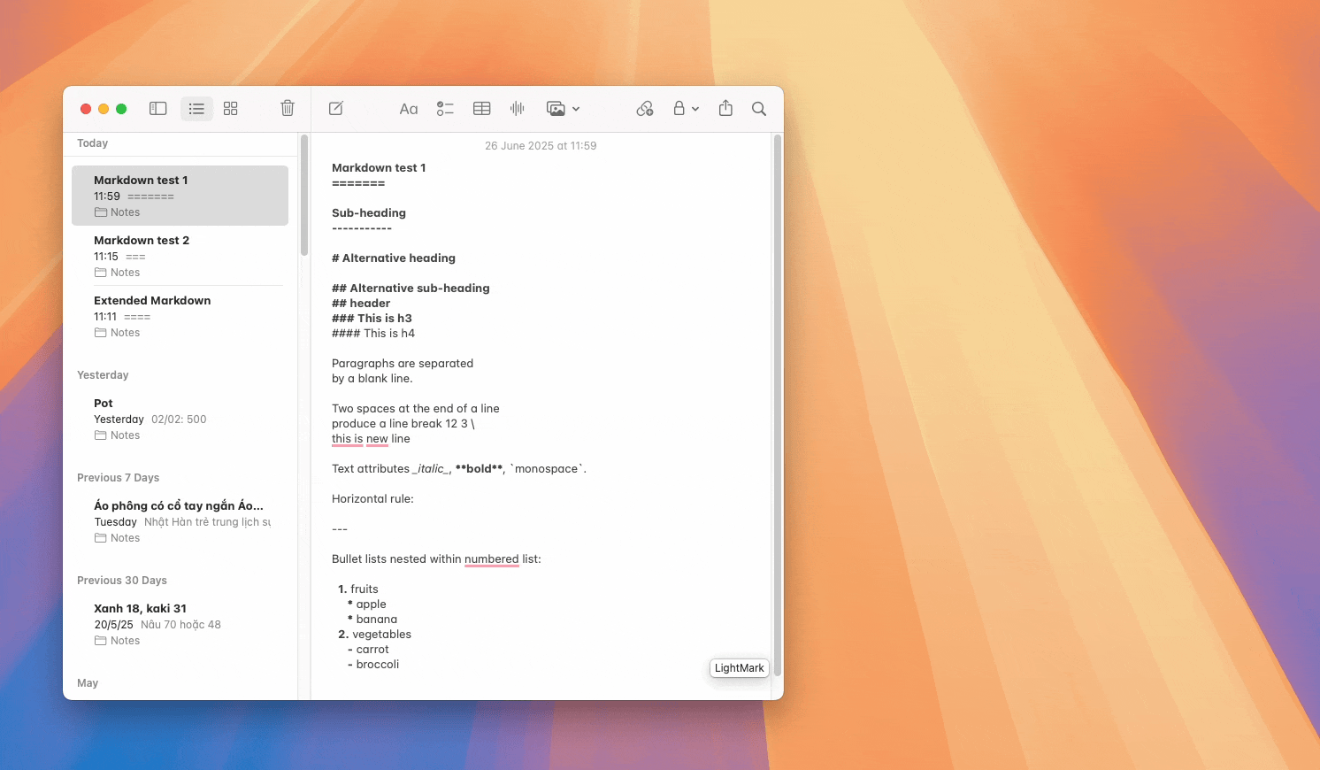 LightMark - Apple Notes markdown extension